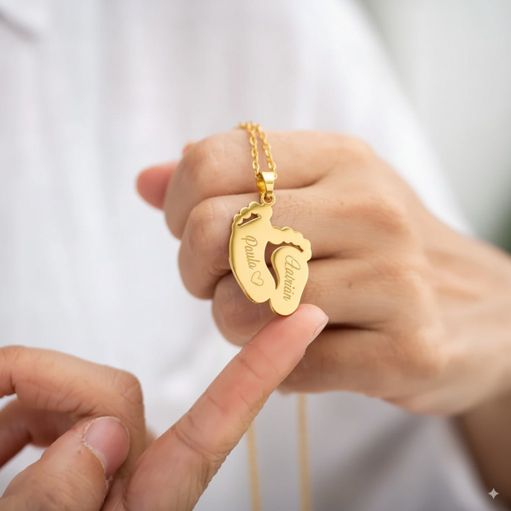 Celebra los primeros pasos de la vida con nuestro delicado collar en forma de pies de bebé. Un detalle lleno de ternura que convierte esos momentos únicos en un recuerdo eterno. Perfecto para hijos, nietos o cualquier ser querido que quieras llevar siempre cerca del corazón.